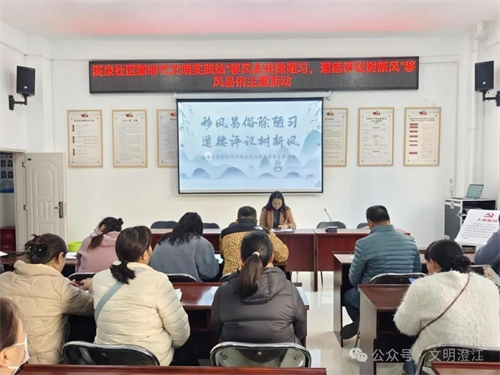 移陋习树新风,评道德入人心。为培育和践行社会主义核心价值观,传播社会正能量,大力营造崇德向善、见贤思齐的良好氛围,近日,玉溪市澄江市溪泉社区新时代文明实践站开展“移风易俗除陋习,道德评议树新风”移风易俗主题活动,邀请党员、居民齐聚一堂,畅谈身边优秀榜样,评议身边陈规陋习,凝聚文明新风合力,传递社会和谐声音。