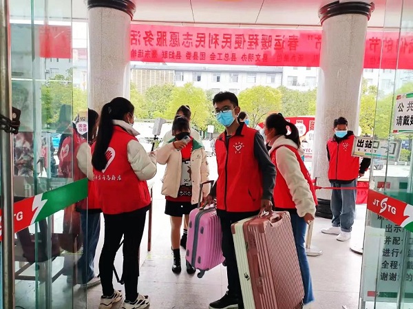 “我是大学生返家乡社会实践团的成员,这次参加春运暖城志愿服务活动,我的主要工作是站在进站门口为进站人员检测体温,提醒他们扫描健康码和佩戴口罩,参加这样的志愿活动,不仅提高了实践能力,同时能为家乡做点力所能及的事也很有意义,下次如果还有类似的机会,我还愿意参加。”大学生志愿者王彩蓉说道。
