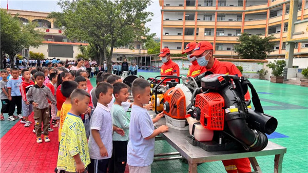活动还在操场进行了救援装备器材展示及讲解并发放救援知识小手册,让师生零距离体验装备的同时认识到森林防火的重要性,以图文并茂的形式进一步将救援知识深化。