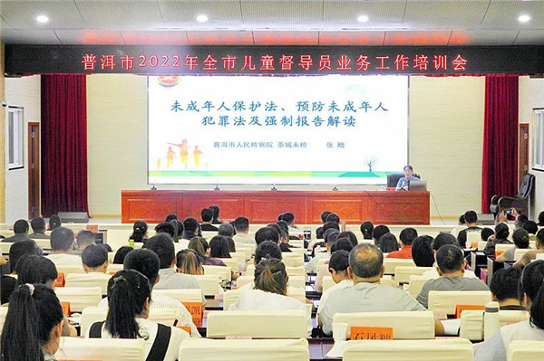 本网讯 近日,茶城未检检察官张晗受普洱市未成年人保护工作领导小组办公室的邀请,为全市140余名儿童督导员带去了一堂深入人心的法治课。