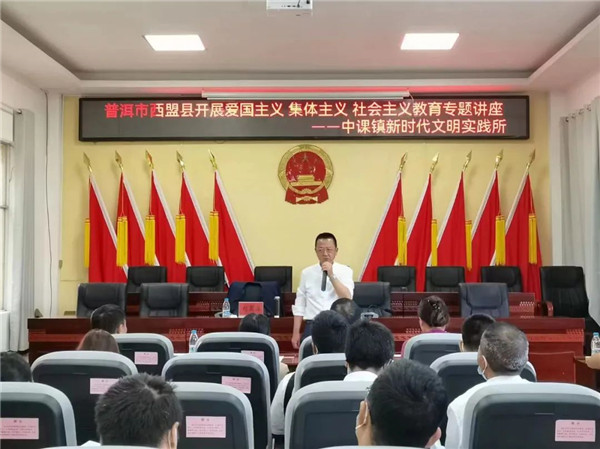 本网讯 为提高全镇干部职工的精神文明素质,近日,西盟县中课镇开展爱国主义、集体主义、社会主义教育专题讲座,讲座邀请了市委宣传部副部长、市文明办主任张晟源进行授课。