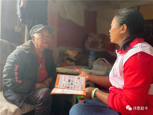 社区老人娜布龙连声谢道:“谢谢志愿者一直都想着我们,有你们的关心照顾陪伴,让我们倍感幸福。”