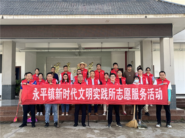 以镇新时代文明实践所为中心,全面覆盖村级文明实践站,组建永平镇志愿服务队伍,结合“我为群众办实事”,打造“实践所、站+志愿者+爱心活动”的服务模式,推出法制宣传、环境治理、爱老敬老、纠纷调解等特色志愿品牌服务。聚焦群众需求事、忧心事、烦心事,常态化组织志愿者打扫公共环境卫生,入户开展普法宣传活动,上门慰问高龄老人等,实现群众在哪里,文明实践就延伸到哪里。