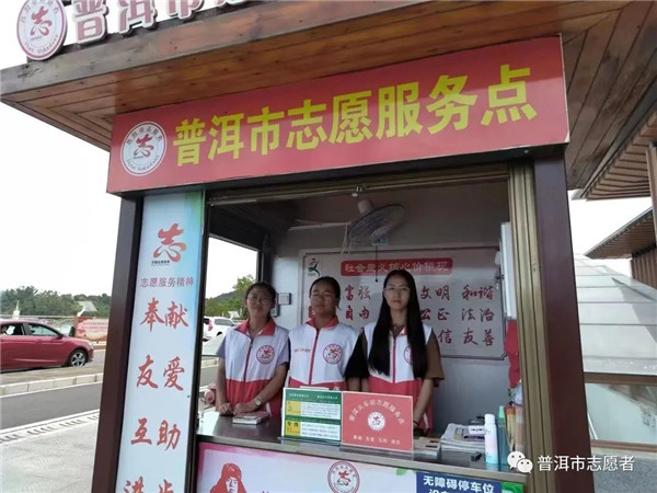 醒目的服务站、热情的志愿者……在普洱火车站进站口,有这样一个志愿服务站,为来往旅客提供暖心服务,引导游客、市民使用文明用语,在火车站这个城市窗口,展示普洱文明城市形象,助力文明城市建设,是新时代文明的实践。