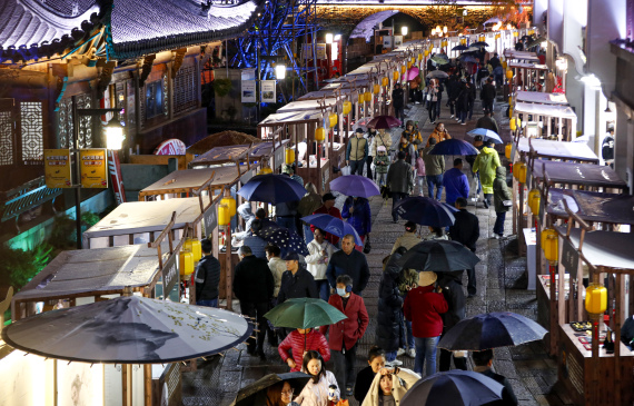 夜幕下,安徽省黄山市新安江边的屯溪河街人头攒动。流光溢彩的徽州漆器、巧夺天工的庐州蛋雕、清香四溢的绿茶制作……一项项多姿多彩的传统非遗技艺,点燃了徽州古街的烟火气。