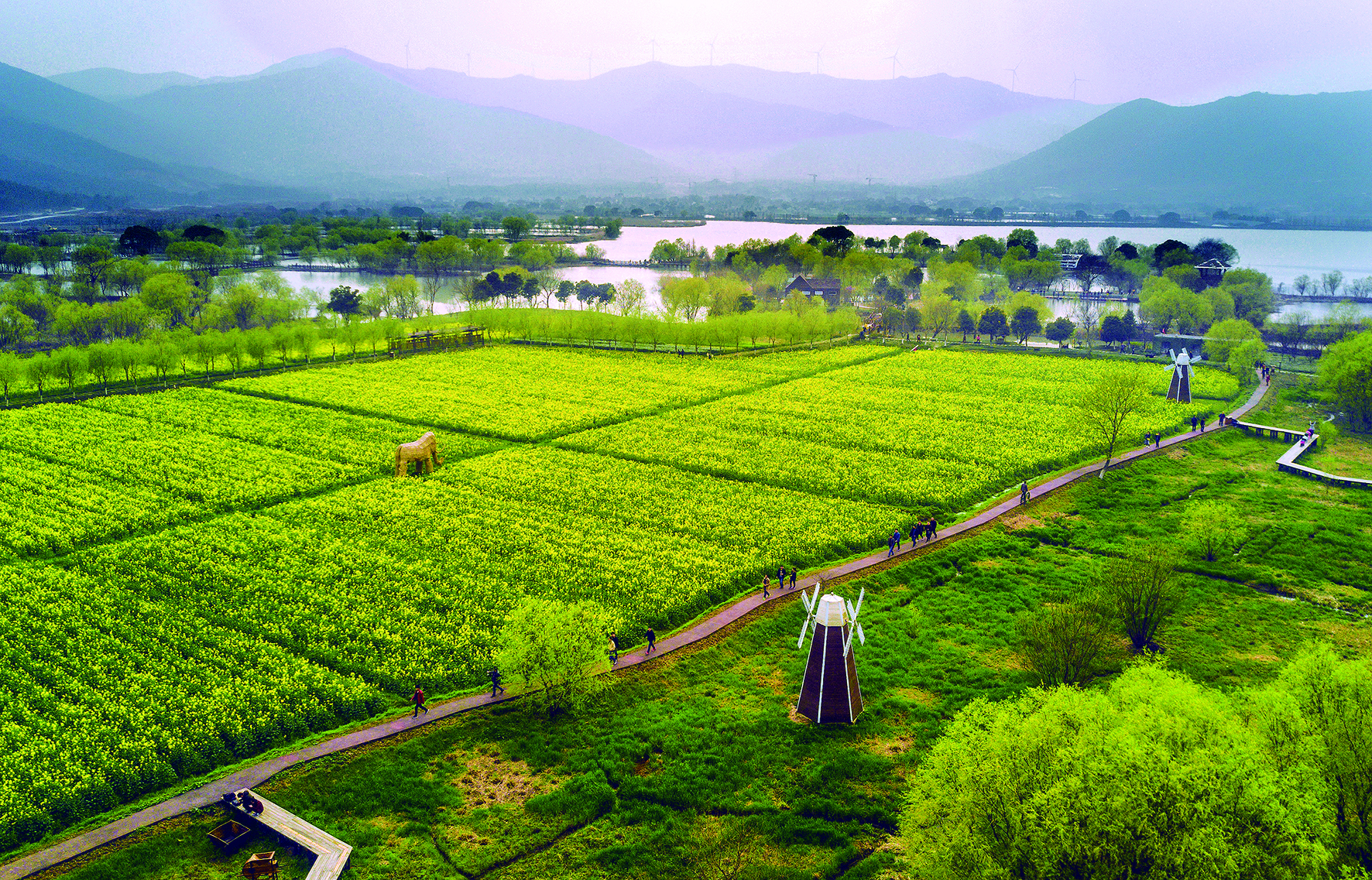 3月25日,太湖图影湿地manbetx安卓手机 园,五十亩油菜花盛开,三五成群的游客络绎不绝。周末天气晴好,景区内踏春的游客达2000余人。