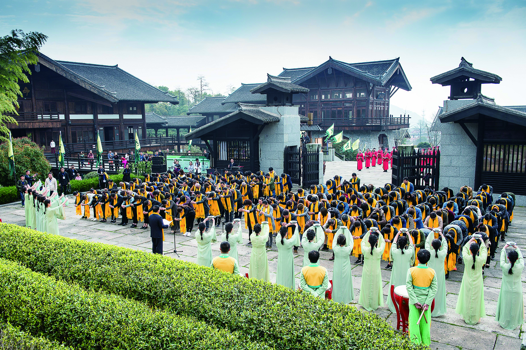 昨天上午,大唐贡茶院内,200名茶农正在参加茶圣陆羽清明祭典。当日,央视中文国际频道大型直播特别节目《传奇中国节·清明》现场直播了祭典活动,吸引了大批当地群众、外来游客的参与。