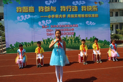 长兴五小小手牵大手创建全国文明城市倡议”活动。