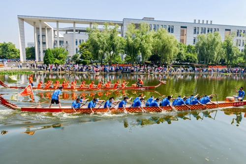市级文明街道龙山街道组织的和睦塘龙舟比赛则在传统的习俗上延伸为一项运动,展现全民健身魅力。两艘来自龙舟俱乐部和铁人三项俱乐部的龙舟在湖面上英气十足,传递着竞技的快感。“非常好,如果不是年纪大了,我也要加入龙舟俱乐部。”带着小孙子来观看龙舟比赛的老严兴奋之情溢于言表。