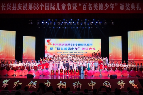 5月31日下午,长兴县庆祝第68个国际儿童节暨“百名美德少年”颁奖典礼在大剧院举行。