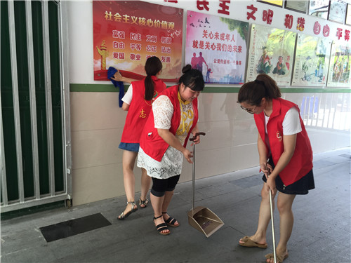 开展义务清扫志愿服务活动。活动中,党员教师主动带头,拿着扫把、簸箕以及毛巾,认真清扫路面垃圾,清理垃圾死角,保持校园干净整洁、为文明城市创建发挥自己的力量。
