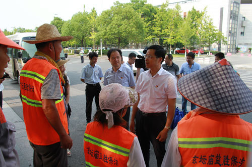 周卫兵一行先后来到县前街、东鱼坊历史manbetx安卓手机 街区项目现场、县公安局交警大队、铁路长兴南货场物流配套区等地,看望慰问奋战在高温一线的环卫工人、建筑工人、交警等工作人员,为他们送上防暑降温用品。