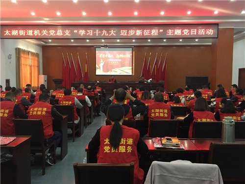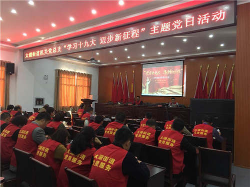 10月24日下午,太湖街道组织全体党员干部开展“学习十九大,迈步新征程”主题党日活动,邀请县委党校殷荣林老师围绕“新理论、新特点、新目标、新要求”对十九大报告进行学习解读。