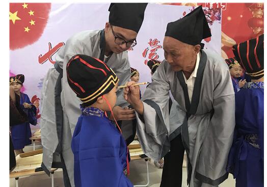 8月12日,长兴县小浦镇中山村在古宅“吴宅”中举办以“开蒙启智,尚礼乐学”为主题的升学礼活动。当地的退休老教师在活动中为孩子们正衣冠、点朱砂,孩子们诵读《弟子规》、写“人”字并给老师奉茶。在新学期来临前,升学礼活动让学生们感受传统manbetx安卓手机 的魅力,继承发扬古老的国学manbetx安卓手机 。