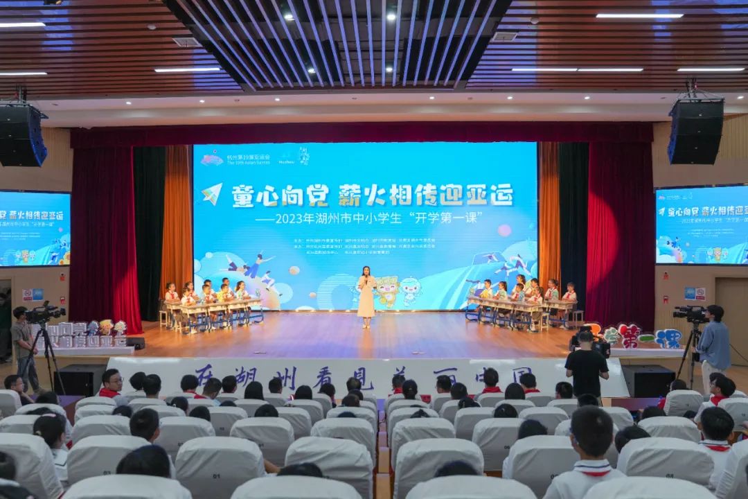 本次“开学第一课”主题为“童心向党 薪火相传迎亚运”,分为拼搏、坚持、信念三个篇章进行。通过师生互动形式,邀请亚洲杯举重锦标赛冠军李燕艳、“国庆大阅兵”成员梅月圆、“中国好人”顾海林现场分享成长故事,引领广大中小学生形成正确的世界观、人生观、价值观,听党话、感党恩、跟党走,以主人翁的姿态支持亚运、参与亚运、礼迎亚运。