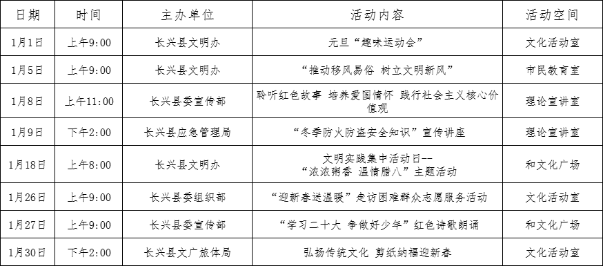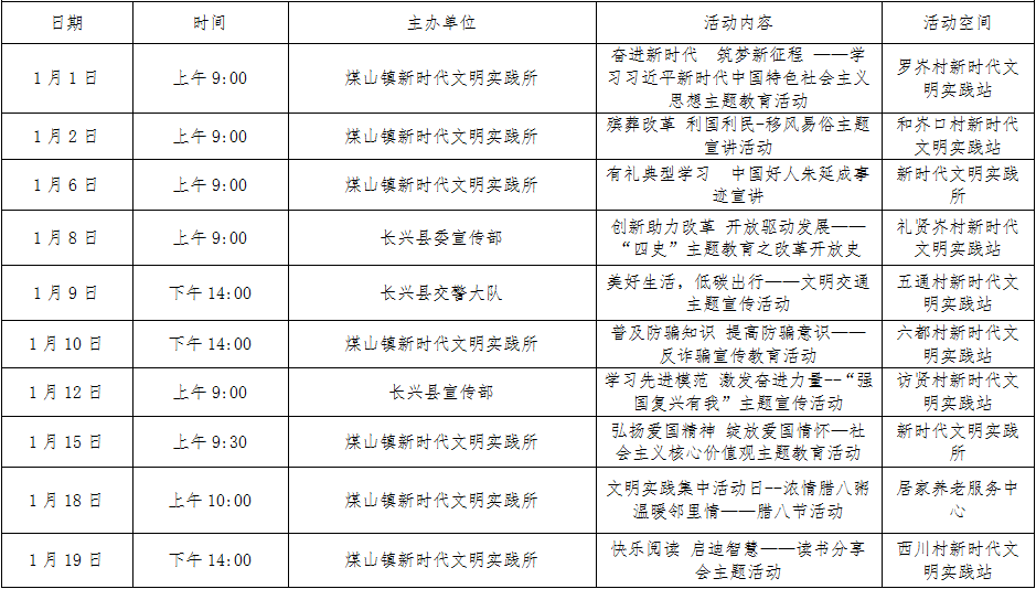 一元复始,万象更新,我们的活动还在继续,为了充分发挥新时代文明实践中心、所(站)的作用,让文明实践之风吹遍长兴大地,各乡镇(街道、园区)准备了精彩纷呈的文明实践活动,让我们一起来看看吧!