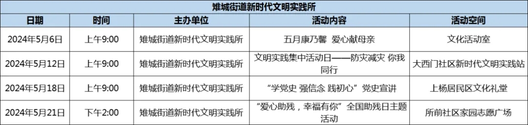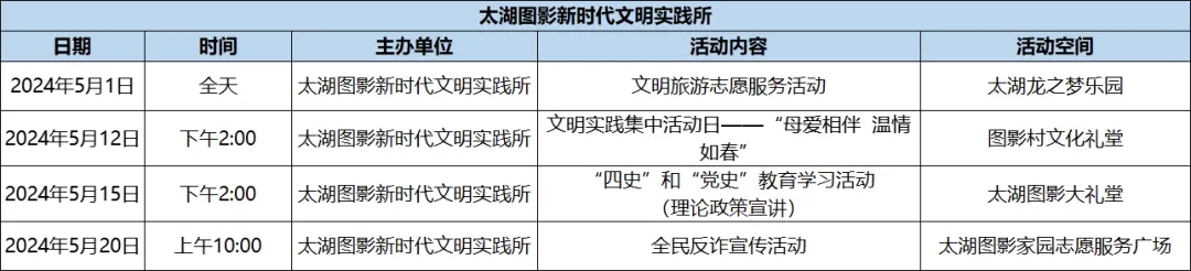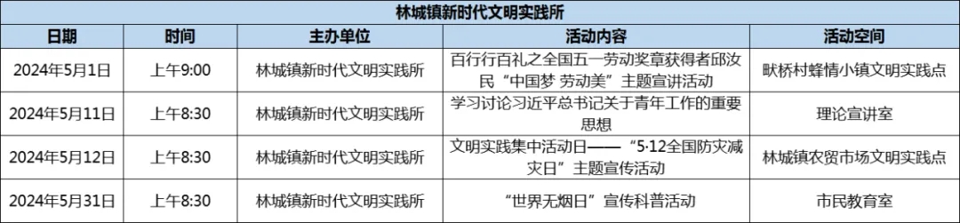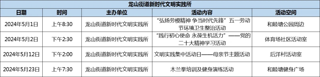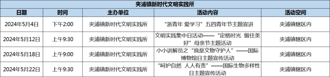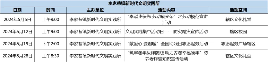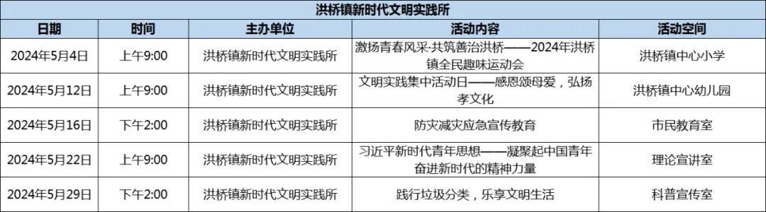 春夏交替,五月如期而至,为传递新时代文明之风,长兴县各乡镇(街道、园区)聚焦“五一劳动节”“防灾减灾日”“母亲节”等重要节日,精心准备了5月份新时代文明实践活动计划,汇集了众多有趣且有意义的活动,新鲜出炉,精彩纷呈!