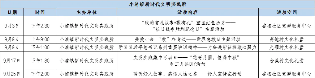 金秋九月,文明之花遍地开,文明之树硕果累累。为充分发挥新时代文明实践阵地作用,丰富广大群众的精神manbetx安卓手机 生活,长兴县各乡镇(街道、园区)以“我们的节日·中秋”“抗日战争胜利纪念日”等重要节点为契机,广泛开展各类新时代文明实践活动,一起来看看吧!