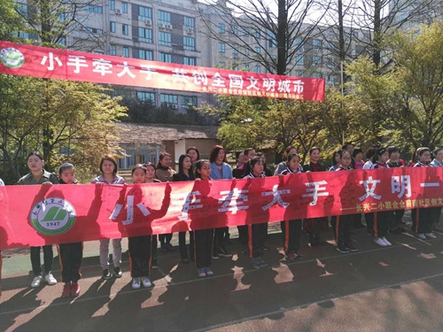 长兴二小举行“小手牵大手 共创全国文明城市”活动启动仪式