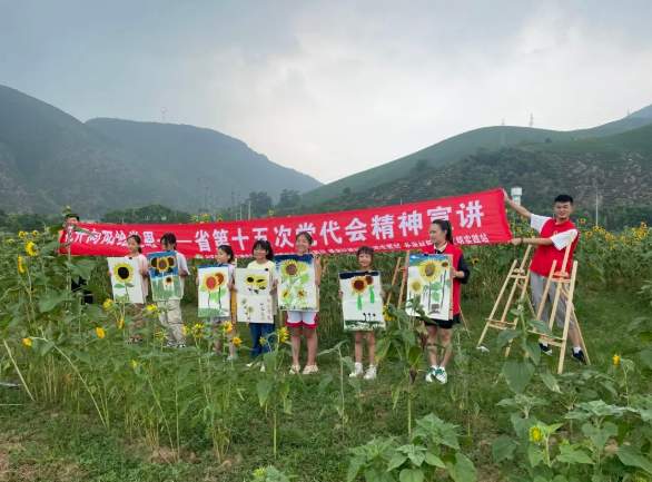 近日,和平镇琛碛村、横涧村、长岗村新时代文明实践站在琛碛村南山花海景区联合开展以“传递党的‘好声音’ 花开向阳绘党恩”为主题的省第十五次党代会精神学习活动。