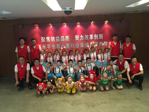 作为全场最小的演员——长兴机关幼儿园的小朋友和爸爸们为大家表演了亲子舞蹈《大王叫我来巡河》,结合全面开展的“剿灭劣V类水”专项整治活动,创设“大王”、巡河娃、鱼虾等角色,弘扬“河小二”精神,反映“青山绿水就是金山银山”的美好生活。干劲十足的小小巡河娃和活泼可爱的鱼虾们等角色向全县人民展现机关幼儿园的美好形象,赢得了嘉宾们的热烈掌声。
