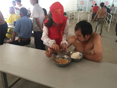 在精彩的演出之后,孩子们跟随“志愿梦之队”来到龙之梦食堂,为龙之梦的建筑工人们送去了绿豆汤和贺卡,表达了对工人们的敬意以及祝福。