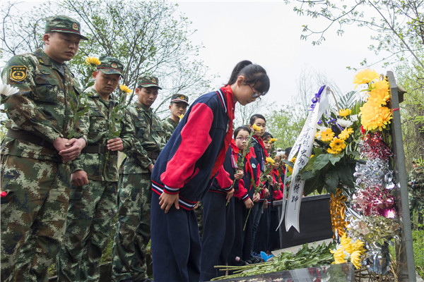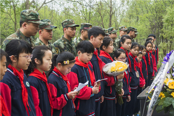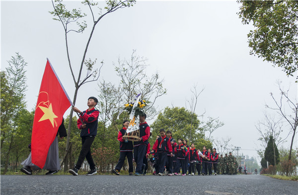 “万条千缕绿相迎,舞烟眠雨过清明。”4月3日上午,包桥中心小学20多名少先队员们冒着蒙蒙细雨排着整齐的队伍,高举着少先队队旗,在该校安全副校长章炳良的带领下走出校园,和画溪消防中队的官兵们一起来到革命先辈祝阿松爷爷所在的陵园。