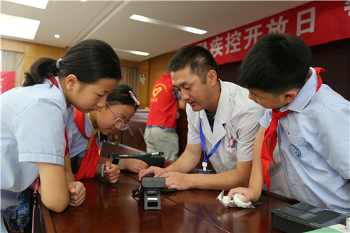 活动打破传统课堂教学,现场安排了免疫规划接种、防护服穿脱、眼球模型认知、膳食宝塔数据解读、钉螺辨识、环境监测工具使用等互动环节,向学生普及传染病预防、膳食营养、环境保护、近视预防等健康知识,让孩子们在玩中学知识,从小养成健康生活方式,同时通过大手牵小手形式,向更多人传播健康新理念。