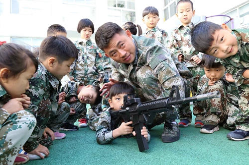 通过游戏、讲故事、军事训练等活动对孩子们进行为期一星期的国防教育,将国防教育融入日常活动之中,让孩子们从小了解国防知识,增强爱国教育。