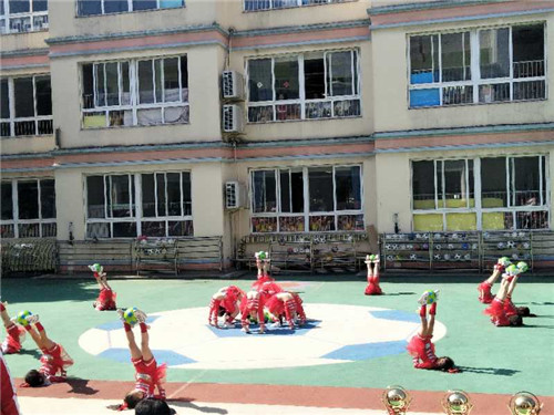 在活力四射的音乐声中,小小足球队代表上台宣誓,在嘹亮的宣誓声中足球节的活动正式拉开帷幕。接下来,大班表演队的孩子们换上靓丽的演出服,一支青春洋溢的舞蹈,点燃了在场所有观众的热情。紧接着,足球操的运动员们亦准备就绪,他们穿着统一的球服,迈着灵巧的步伐,自信昂扬地走了过来。