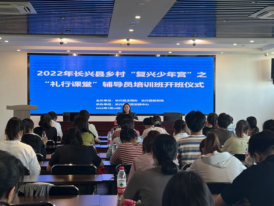 为丰富乡村“复兴少年宫”建设内容,深入推进“浙风十礼”文明新实践,浙江省湖州市长兴县推出乡村“复兴少年宫”之“礼行课堂”。辅导员队伍建设是推进“礼行课堂”的重要一环,7月14日,长兴县文明办联合县教育局共同举办的长兴县首期乡村“复兴少年宫”之“礼行课堂”辅导员培训班在县教育实践中心开班。