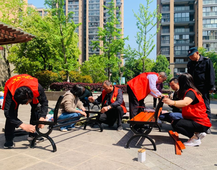 近日,太湖街道陈皇社区陆汇嘉园小区的志愿服务广场上热闹非凡,身穿红马甲的党员志愿者、“红色物业”志愿者忙着拆袋、搬运、组装刚刚运送到的10套休闲长椅和15只儿童凳,经过3个多小时的携手组装,崭新的休闲椅和儿童凳顺利完成了配套组装,分布在小区内公共区域的各个角落。