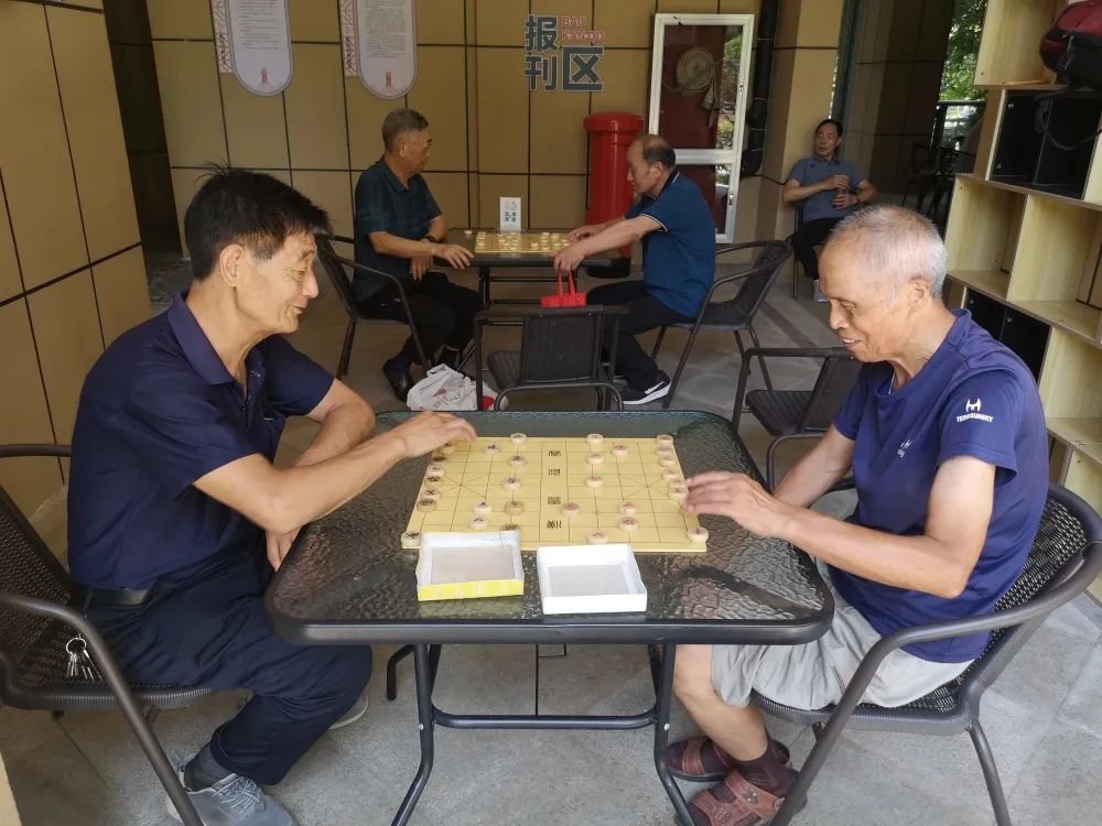 走进雉城街道仓前街社区银领乐活驿站,里面其乐融融,一片欢声笑语,仓前老茶馆里几名老戏迷一边听戏一边喝茶、书画室中书画爱好者正在挥毫泼墨、乒乓球室中体育爱好者正在激烈对战……