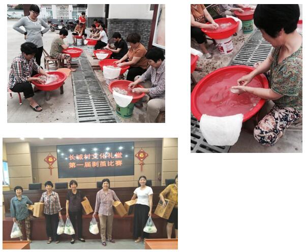 为了弘扬传统,6月11日,和平镇长城村manbetx安卓手机 礼堂举办首届剥茧比赛,有7位剥茧能手参加比赛,向大家重现了这项技能。活动持续2个小时,7位选手将一个一个茧子剥开、层层套在手上,去除蚕蛹和脏东西,达到适当厚度的时候,取下,开棉兜,拧干,甩开,一个个叠好。围观的群众纷纷上来帮助打下手,有帮助把黏在一起的茧子分开的,有帮助整理棉兜不让沾水的,也有现场拜师学艺的……“月芳姑姑剥得最快、棉兜最白”,“末英的棉兜最大,可以拉丝面做棉被”,“灵芝的棉兜精细”……也有现场给出评价的。
