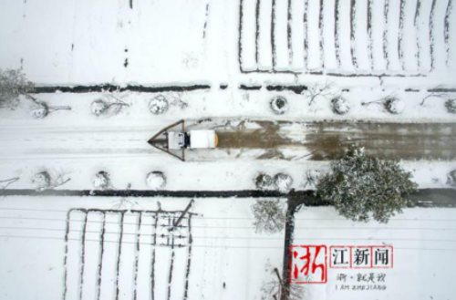 这辆神器叉车每次作业可覆盖约3米的范围。当杨建棠开着叉车而过时,路上的积雪就会自动被铁板分到两边,就像一艘航行在雪地里的“船”一样。因为出入便利、又能连续作业,夹浦镇各村纷纷效仿,共赶制二十余台除雪神器,为全镇清除积雪作出了很大贡献。