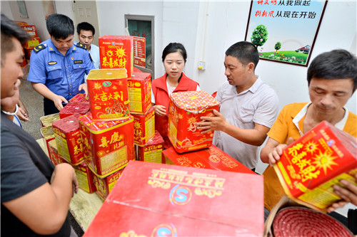 据统计,短短3小时,工作人员就回收了1500余箱烟花爆竹。回收的烟花爆竹将集中装箱,交由安监部门统一专业处理。