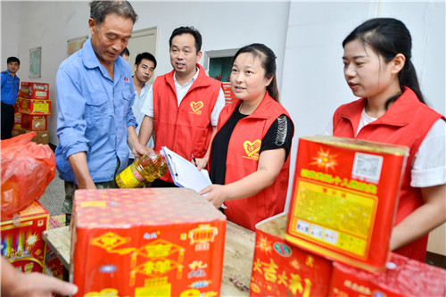 “家里还存留着不少烟花爆竹,我前一阵还琢磨着怎么处理呢。”“洗衣粉、卫生纸、洗洁精,家里得好一阵不用买了。”装好置换的生活用品,林大爷很满足。