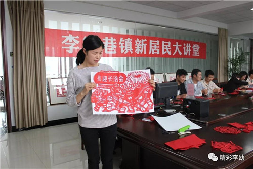 10月15日,李家巷镇组织中心幼儿园到镇旗滨玻璃厂开展“李家巷镇新居民大讲堂”活动,旨在通过剪纸这一活动形式走近李家巷人的身边,让新居民职工有家的归属感。