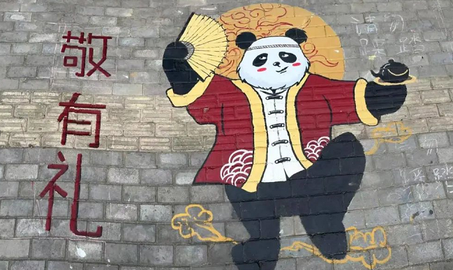 “寻味南山”节点,打造“和礼相伴 南山寻礼”村域品牌,设计红色主题及“敬有礼”主题墙绘。