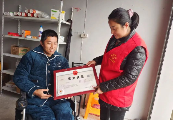 在近期的“串门入户”走访中,了解到周大哥闷闷不乐,以前自己开公司创业,现在在家什么事都不能干,还要拖累家人,心里难受。小陶建议他在家开个小店,现在政府也有助残政策,有个收入,实现二次创业,也体现自身价值。随即,小陶通过政务网帮助周大哥申请了副食店营业执照。