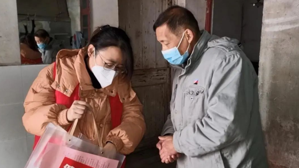 每到一户,社区干部都逐一讲解各种防疫物资的使用方法。并不厌其烦地叮嘱大家出门戴好口罩,回家后及时洗手消毒,用中药冲剂增强抵抗力。