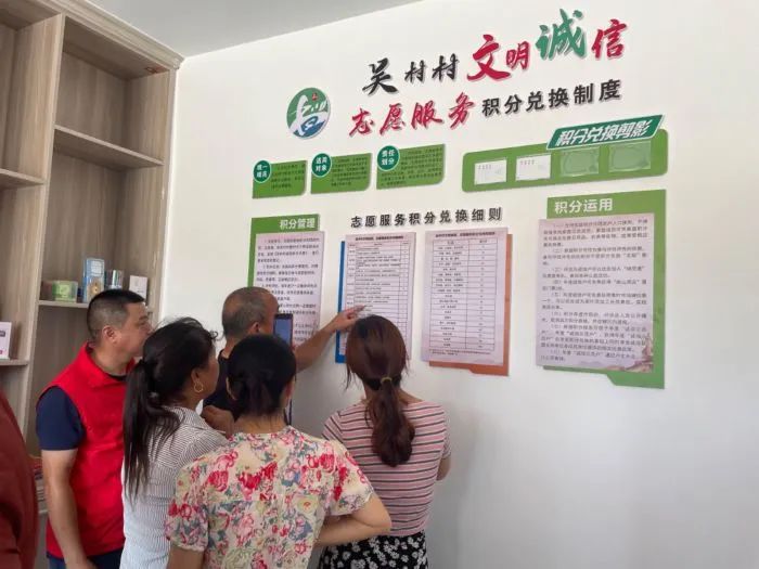 结合新时代文明实践,村里还以“美丽庭院”建设为抓手,带头创建“美丽庭院”示范户、做到门前“三包”、垃圾准确分类。通过实行诚信档案积分兑换制度,村民通过志愿服务活动获得的积分可以在“积分超市”兑换各种生活用品。