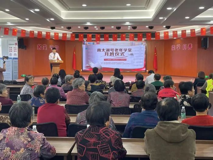 10月23日,南太湖号老年学堂开班仪式在太湖图影山湖花园社区manbetx安卓手机 礼堂举行,50余位老年学员参加开班仪式。