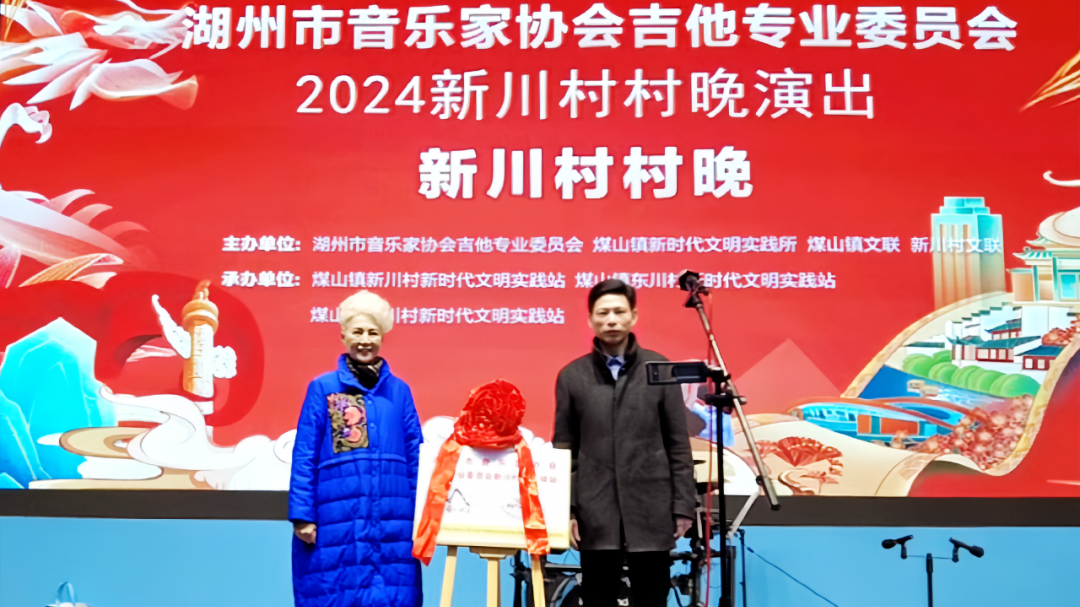 1月29日,煤山镇新川村与湖州市音乐家协会吉他专业委员会合作,成立新川村音乐驿站,并共同举办新川村村晚。