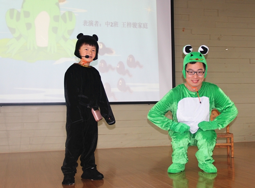 早上8点左右,爸爸妈妈们都提前来到幼儿园,孩子们以饱满的热情、热烈的掌声迎接爸爸妈妈的到来。在活动现场,幼儿园的师生和家长共同带来了形式活泼、内容丰富的绘本朗诵、演唱和舞蹈;还有伴随着悠悠的音乐的国学经典。家长和孩子在活动前精心准备,自制了扮演角色的服装、道具,诵读的音乐和背景PPT,为诵读活动添色,也让现场观摩的观众们和评委们掌声不断。
