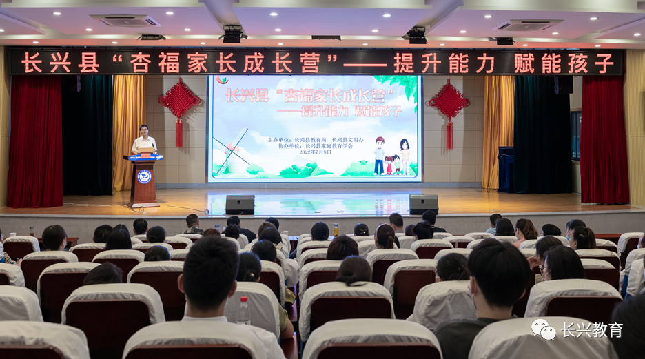 7月9日上午,长兴县“杏福家长成长营”家长课堂首期在长兴县第一小学开课。长兴县教育局党委书记、局长钦国强带来主题为“家庭教育:认识与行动”的首堂辅导课。活动由长兴教育局副局长吴涛主持,长兴县城区小学校长、心理老师和近200名家长代表参与听讲。
