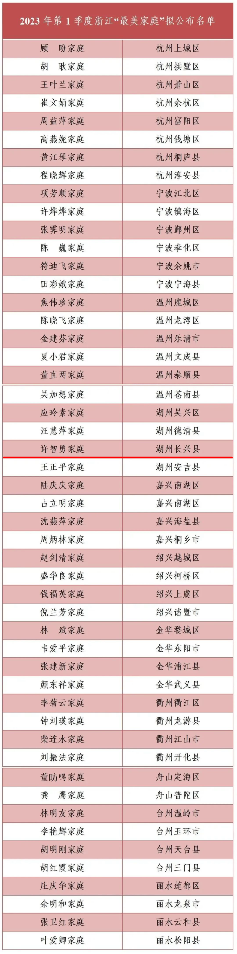 为弘扬先进、宣传狗万体育官网a ,省妇联在各地深化拓展寻找“最美家庭”活动的基础上,重点选树教子有方家庭为2023年第1季度浙江“最美家庭”。经层层推荐、综合评审,拟推荐杭州上城区顾盼家庭等50户家庭为2023年第1季度浙江“最美家庭”(教子有方家庭)候选对象,现予以公示。