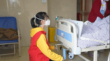 患者吴喜英说:“这里的护士、志愿者都很好,疫情期间,大学生能来做志愿者很不容易,我为他们点赞!”