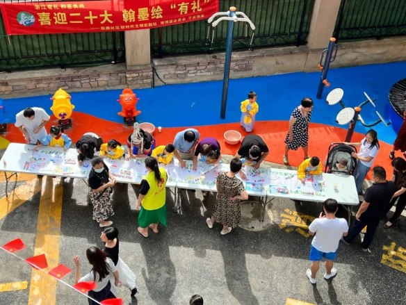 国庆节即将到来,为扎实开展爱国主义教育,进一步提升青少年的文明素养,引导青少年成为“浙江有礼 和在长兴”的传承者、践行者,9月25日,长兴县龙山街道双拥社区联合玫瑰园小区业委会及“平安物业”,组织辖区老人与孩子,开展了“喜迎二十大、翰墨绘‘有礼’”为主题的五米长卷绘画活动。