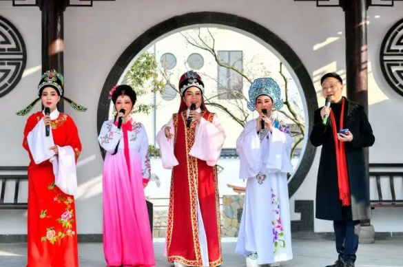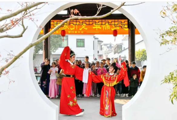 1月9日,长兴县太湖图影旅游度假区小沉渎村滩簧戏苑,村民正在欣赏传统戏曲演出。长兴县妇联联合县文联组织开展“送戏下乡”manbetx安卓手机 惠民活动,组织manbetx安卓手机 志愿者走进乡村,为村民送春联,表演非遗传统节目,让村民在家门口乐享manbetx安卓手机 “大餐”,丰富基层群众manbetx安卓手机 生活,助力乡村manbetx安卓手机 振兴,欢乐迎新年。